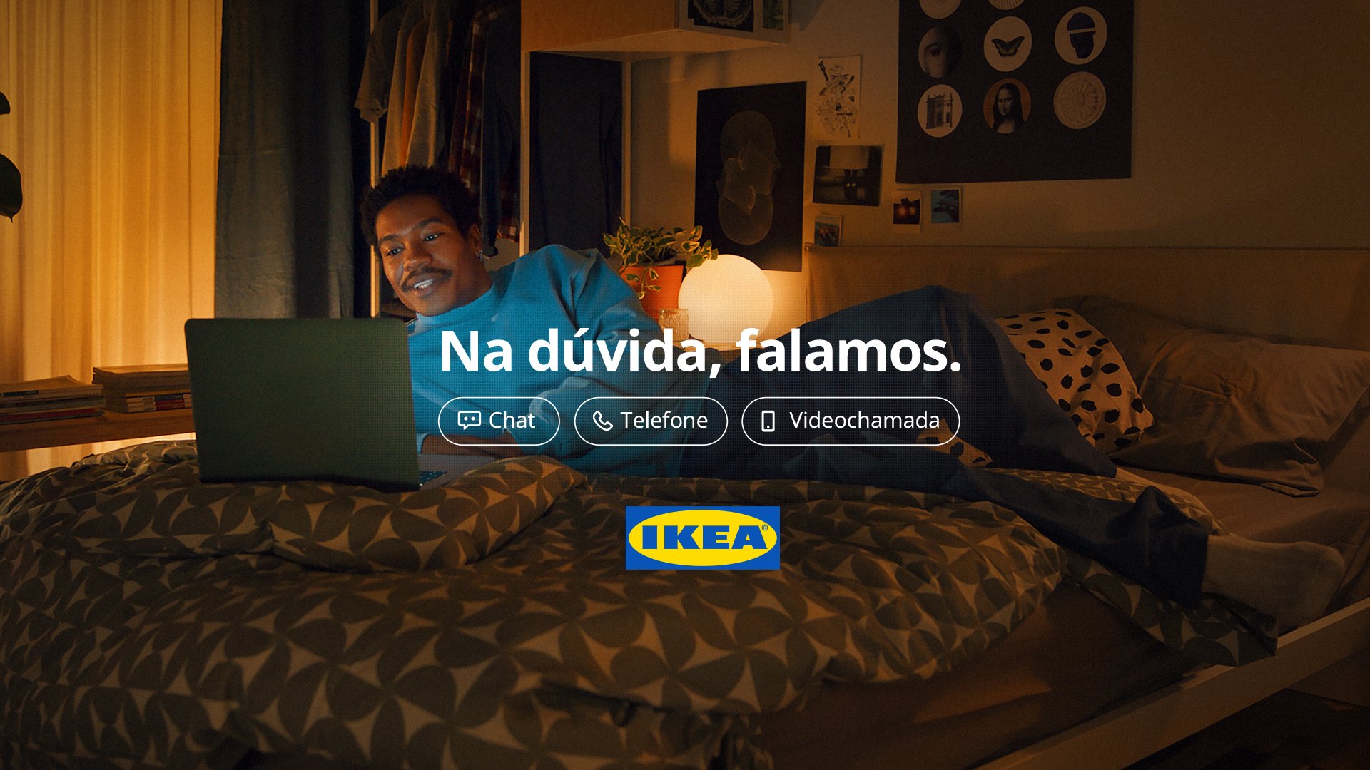 A experiência de loja IKEA é icónica. Mas há sempre dúvidas que surgem e, quando vamos à loja, acabamos a disputar funcionários com outros clientes. Porém, o comportamento de compra mudou muito nos últimos anos (as compras online aumentaram 5x em volume em 3 anos). A IKEA precisava de comunicar aos seus clientes o serviço Remote Selling, que acompanha os clientes remotamente de forma personalizada, tal e qual como na loja. Os canais — telefone, chat e videochamada — permitem aos clientes falar e tirar dúvidas sem sairem de casa. Tínhamos de comunicar este serviço através de filmes mostrando aos clientes que, na dúvida, onde quer que estejam, podem sempre contar com a ajuda da IKEA.