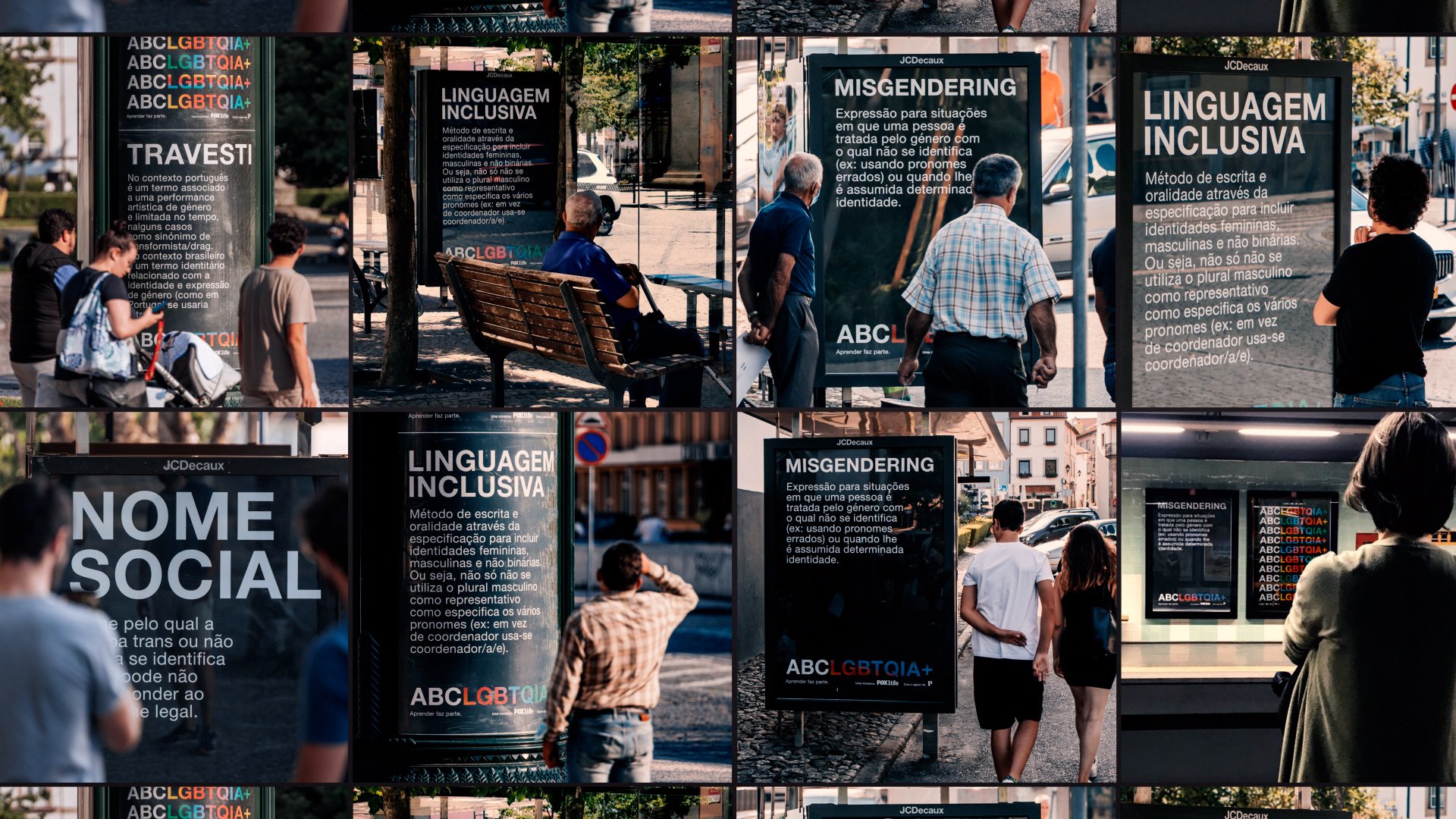 Ao lermos as sinopses oficiais da série, notámos que mesmo elas tinham dificuldades em escolher o termo apropriado para descrever a personagem. "Não binária”, “Trans”, “Gender Fluid”... Não havia consenso. Então, tivemos a certeza. Era preciso começar pelo início. Pelo ABC. Criámos o ABCLGBTQIA+, um novo glossário de linguagem inclusiva criado para ensinar o país inteiro, que fornece material didático de fácil aprendizagem (em vídeo, texto e áudio). Livre de direitos, pode ser reutilizado por qualquer pessoa, marca ou instituição. Com o glossário online e as palavras nas ruas, o impacto foi enorme. E o ABCLGBTQIA+ é hoje um programa de formação em Universidades Sénior, num esforço de transformar os mais conservadores, num dos maiores símbolos de tolerância que esta causa poderá ter.