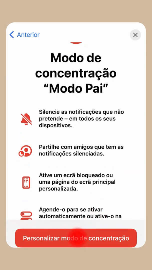 Apesar de passarmos muitas horas em frente ao ecrã, o smartphone ainda tem funcionalidades que desconhecemos. Aproveitámos o modo focus dos smartphones iOS e Android para informar as pessoas que podem criar novos modos e criar um Modo Pai. A campanha abre com um filme onde as crianças pedem aos pais para ativar o Modo Pai para passarem mais tempo com eles. Depois, estas mesmas crianças apresentam tutoriais iOS e Android onde explicam todos os passos necessários para criar o Modo Pai, com as restrições de notificações e filtros de chamadas de trabalho.
