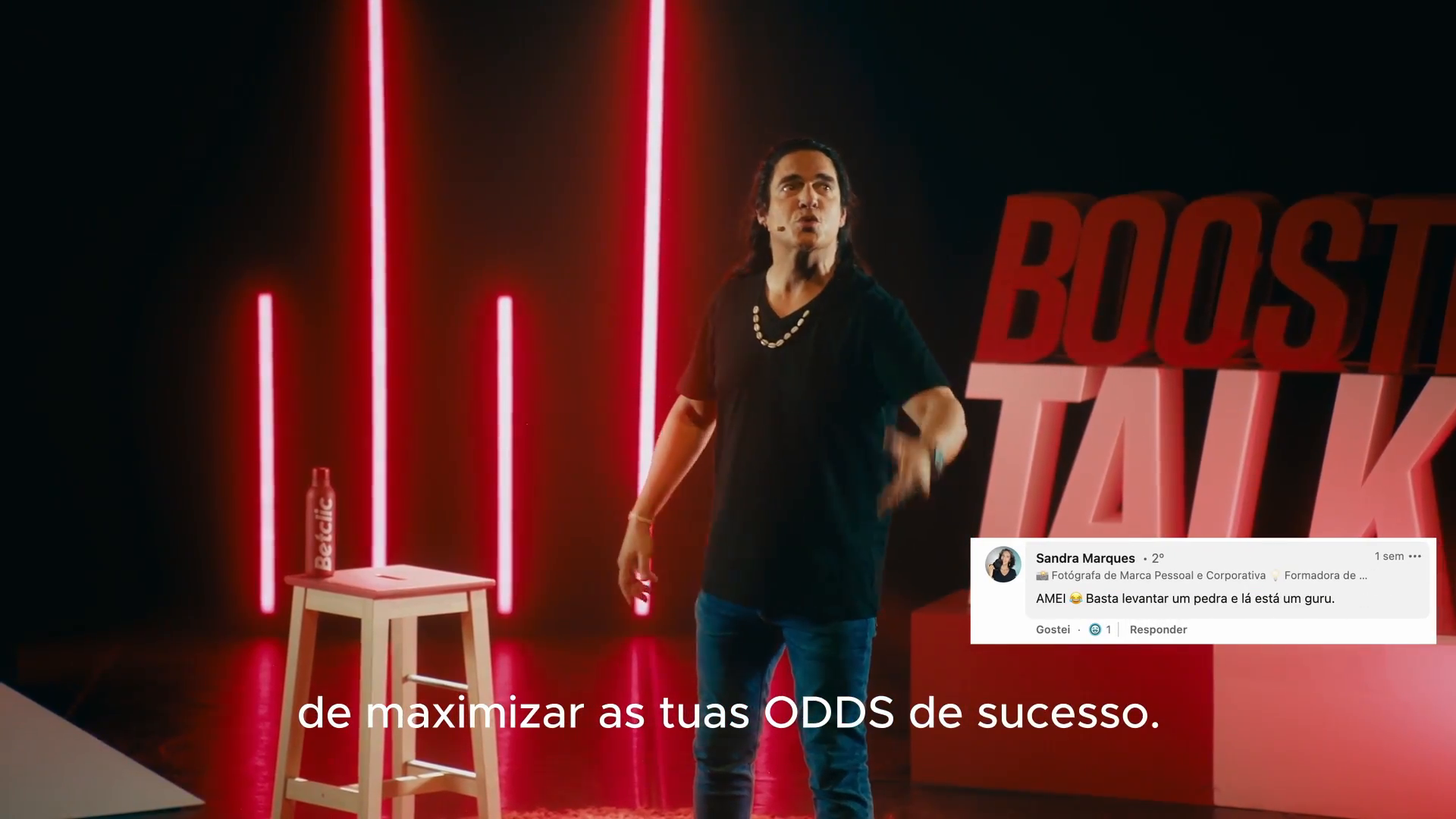 Para lançar uma oportunidade de Boosted Odds na sua plataforma, a Betclic aproveitou o buzz dos life coachs para criar as suas próprias Boosted Talks no digital. Um conjunto de vídeos em post e story, tendo como protagonista o inspirado Patrick Sequeira (Pêpê Rapazote), que dispara dicas de “auto-ajuda-estima-confiança-acreditaemti” para que ninguém fique desamparado no mundo das apostas.