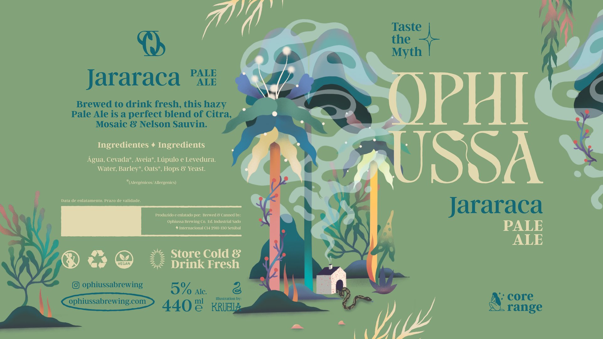 Ophiussa Brewing Company é uma micro-cervejeira localizada em Setúbal, nascida em 2021, que parte da nossa história identitária para o nome que exibe na prateleira: isto porque Ophiussa é o nome dado pelos antigos gregos ao território português e significa «Terra das Serpentes», precisamente porque o povo Ophi era conhecido por ser adorador de serpentes e guerreiro exímio. Ora, definindo-se como sendo inspirada pelos clássicos europeus e pela cultura craft americana, esta pretendia posicionar-se como uma marca portuguesa regida pela qualidade e pela criatividade, mas preparada, também, para ser um player no mercado internacional. Ou seja, a Ophiussa Brewing Company pedia-nos uma imagem assente na história, mas com os pés bem levantados do chão, com a ajuda do arrojo do povo que lhe deu.